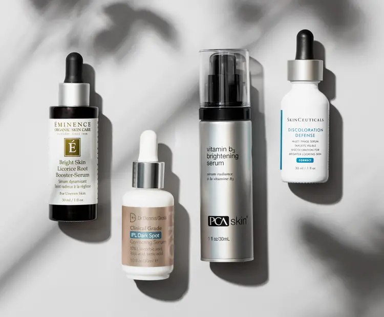 Exfoliating ingredients such as glycolic acid or kojic acid are frequently combined to help remove pigmented cells and boost lightening effects.